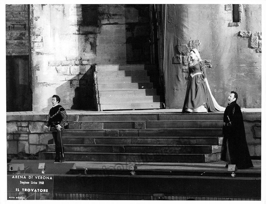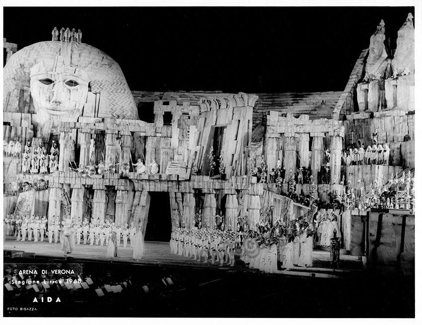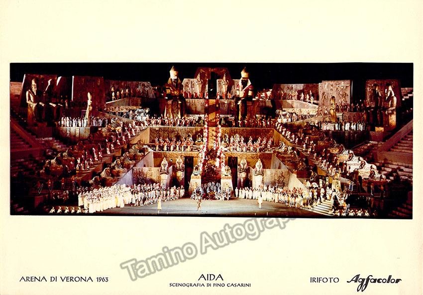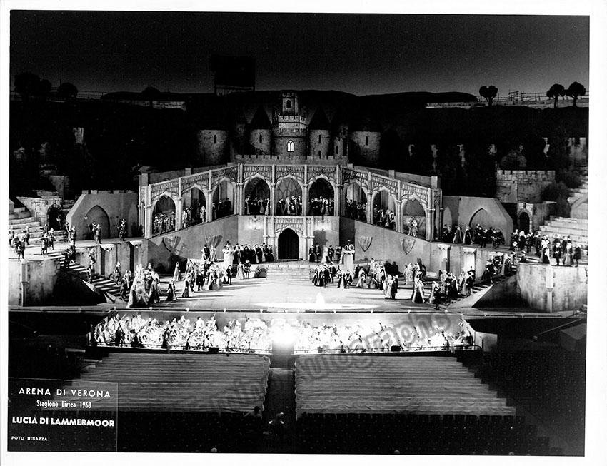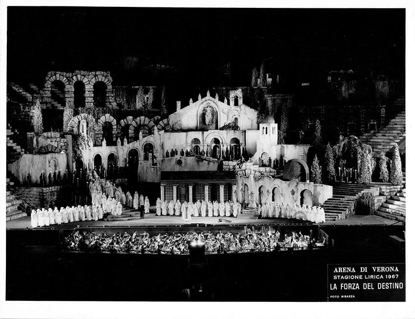 Lot of 29 beautiful unsigned photographs from opera productions at Arena di Verona during the 1960s. Productions include operas such as Aida (1968 & 1963), Norma (1965), La Traviata (1965), Don Carlo, Lucia di Lammermoor (1968), Il Trovatore (1968), Aida (1968) La Forza del Destino (1967), Turandot (1969), Lohengrin (1963), and others.  Most of them are in black and white (only 2 are in color) and stamped on verso by the photographer. Size for each one is 9.4 x 7.2 inches approximately, all in excellent condition.