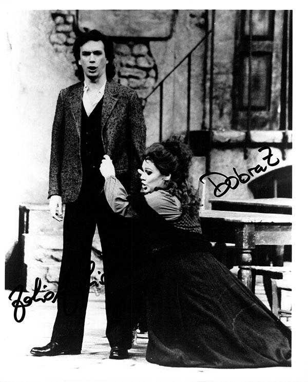 Italian tenor (b.1956) and American mezzo-soprano (b. 1952), double signed photo, shown in Mascagni's Cavalleria Rusticana. Size is 8 x 10 inches, in excellent condition.