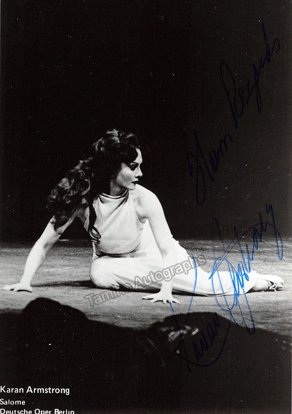 American soprano (b. 1941), signed photo, shown in title role of Richard Strauss's Salome at the Deutsche Oper, Berlin. Size is 4 x 5.6 inches, in excellent condition.