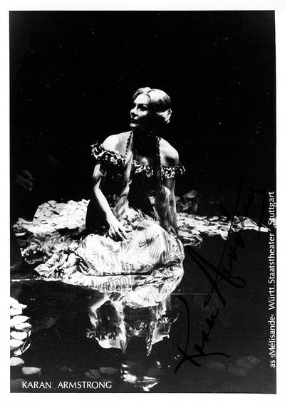 Signed photograph, shown as Melisande in Debussy's Pelleas et Melisande. Size is 4 x 5.75 inches, in excellent condition.