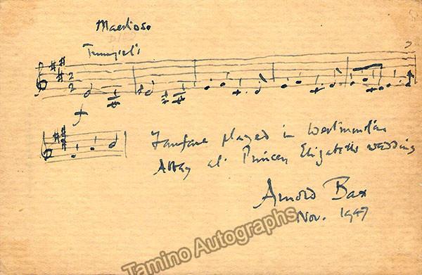 Bax, Arnold - Autograph Music Quote Signed in 1947