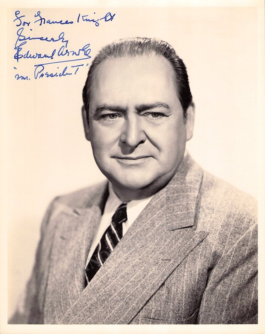 American actor (1890-1956) whose career spanned from 1907 until his death in 1956. Signed photo as Mr. President, inscribed. Size is 8 x 10 inches, in excellent condition.