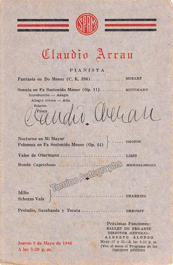 Program for a concert at  Sociedad ProArte Musical, Havana 1946. One sheet program printed on both sides. Size is 5.5 x 8.5 inches, in excellent condition.