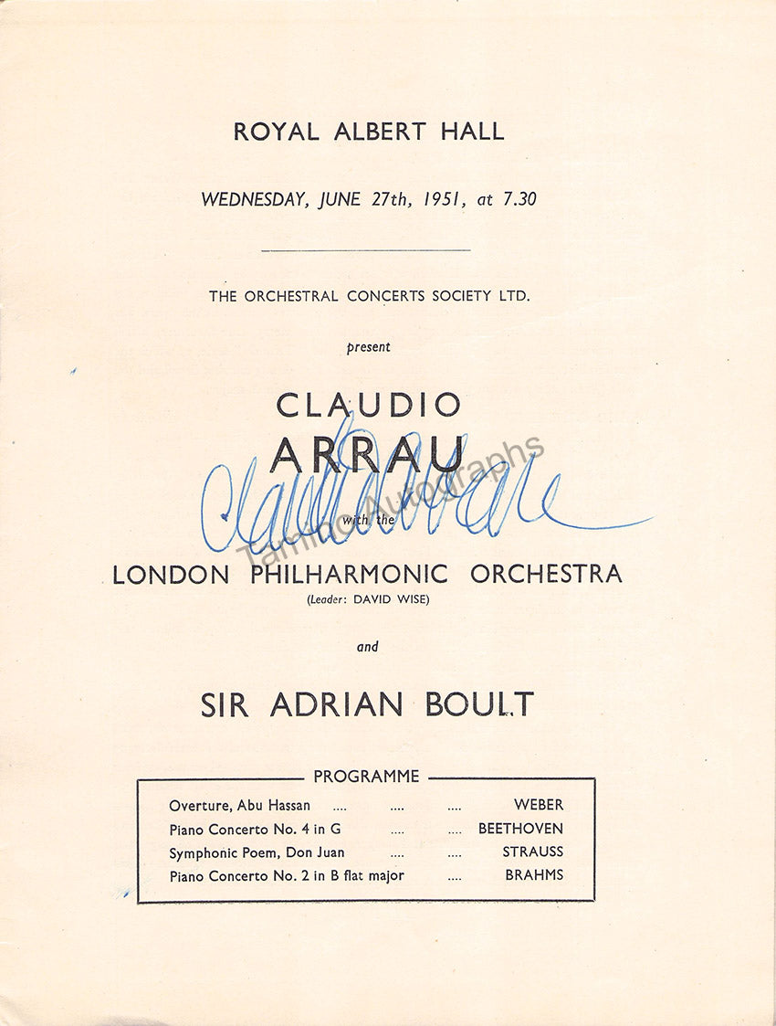 Arrau, Claudio - Signed Program London 1951 Arrau, Claudio - Signed Program London 1951