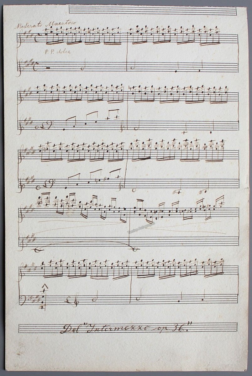 Spanish child prodigy pianist (1896-1954) and eventual master violinist. Autograph music quote with a photo (in a separate piece). At the bottom, inscribed "from Intermezzo op. 36".