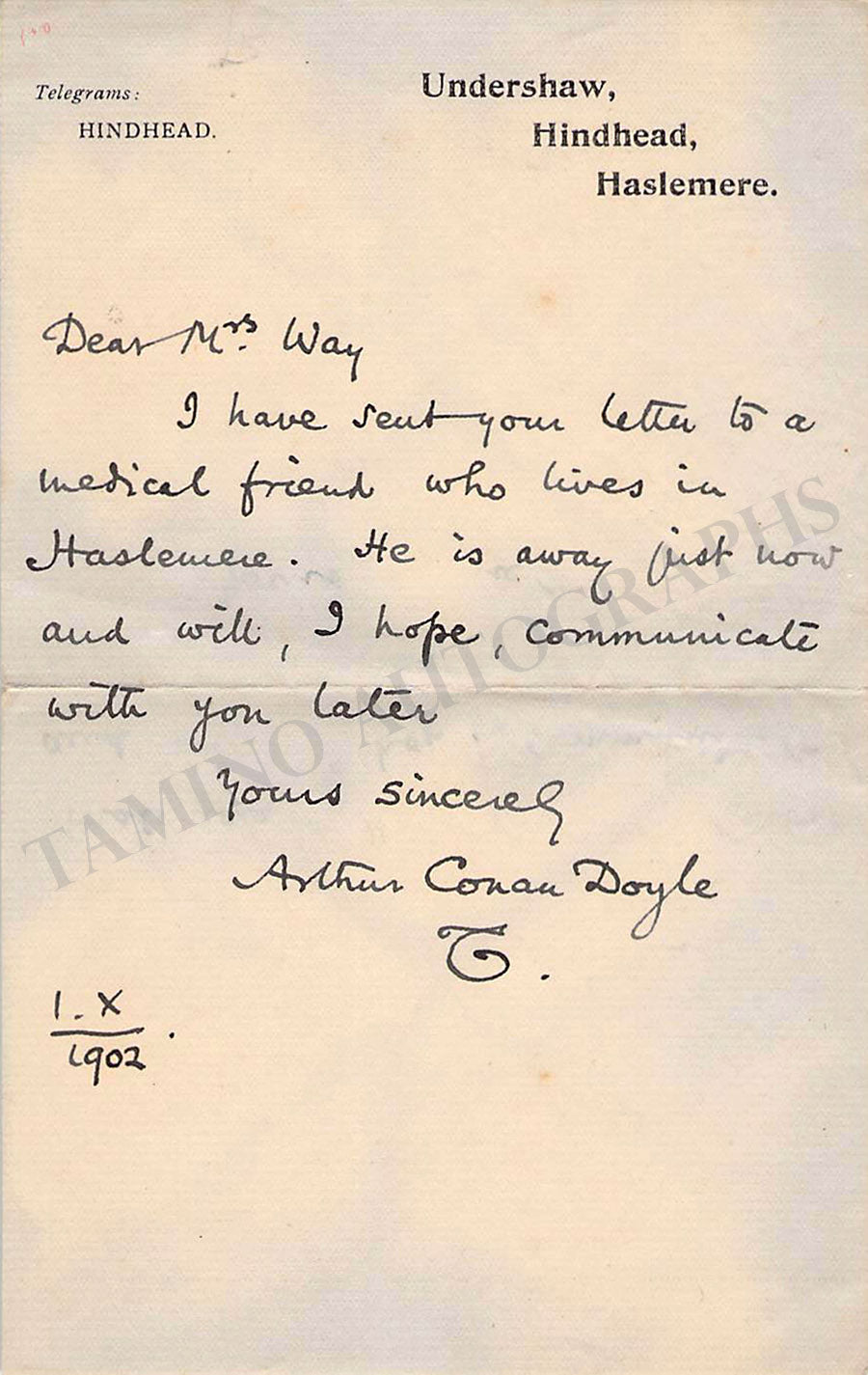 Autograph note in English signed by him. Size is 4.4 x 7 inches, 1 page, in excellent condition.