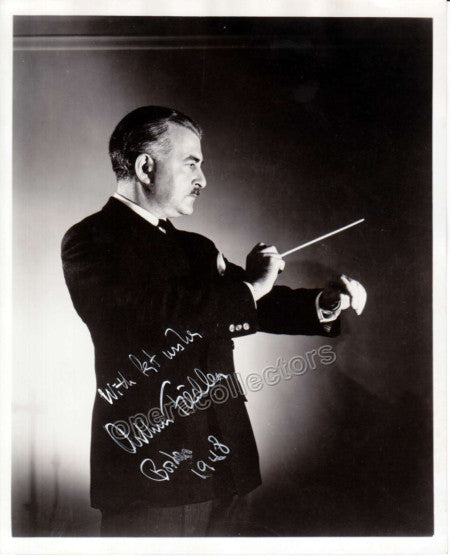 American conductor (1894-1979), long-time leader of the Boston Pops Orchestra, specialized in both popular and light classical music. Signed photo showing him conducting, 8x10 inches, dated 1948.