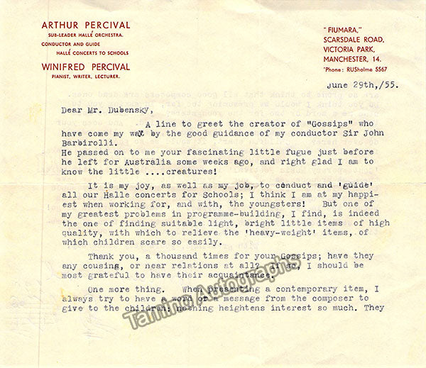 Arthur Percival Autograph Typed Letter Signed 1955