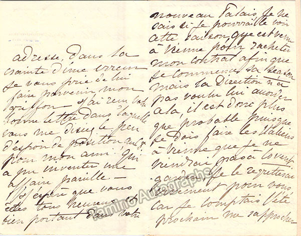 Belgian soprano, initially a mezzo-soprano (1835-1907), autograph letter signed, dated in Berlin in 1865. 4 folded pages, written in French, sold untranslated (signed as "Desiree"). Size of each page is 3.5 x 5.75 inches, small crease on first page, otherwise in very good condition.