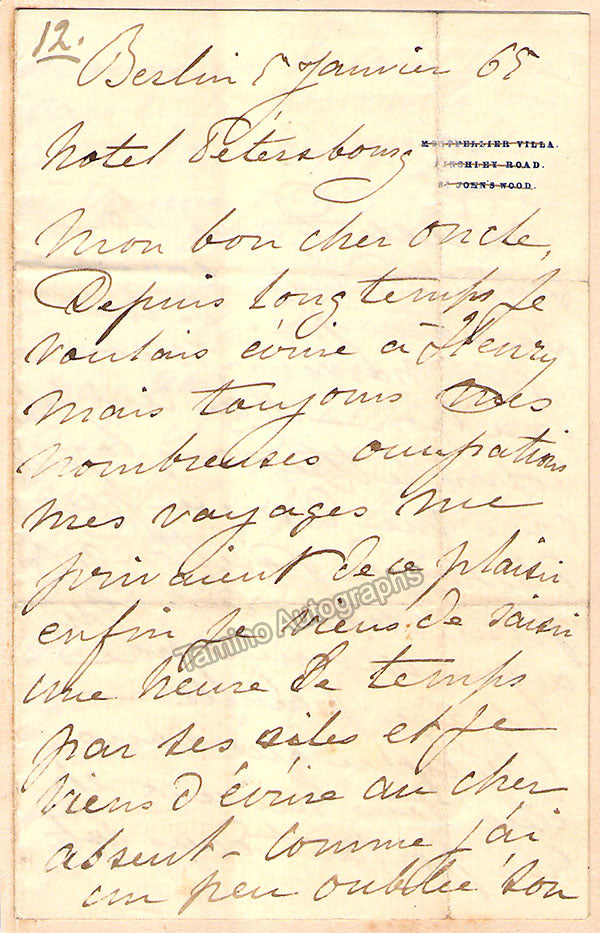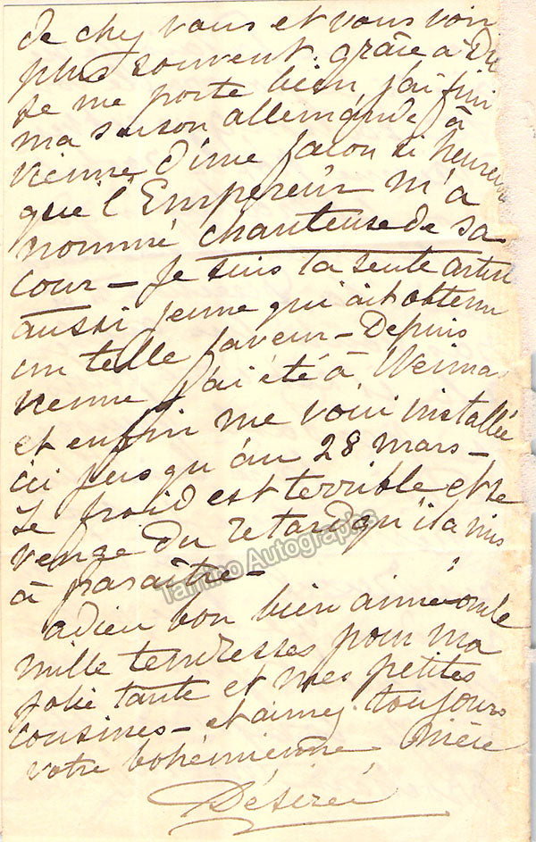 Artot, Desiree - Autograph Letter Signed 1865 Artot, Desiree - Autograph Letter Signed 1865 Artot, Desiree - Autograph Letter Signed 1865
