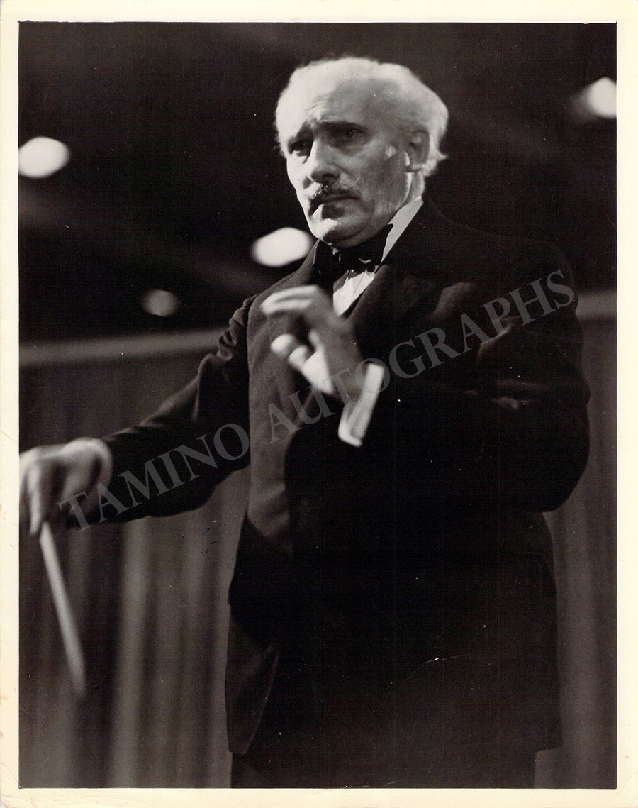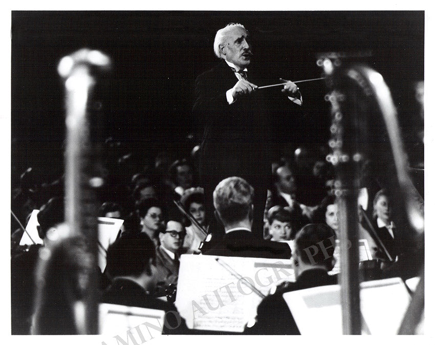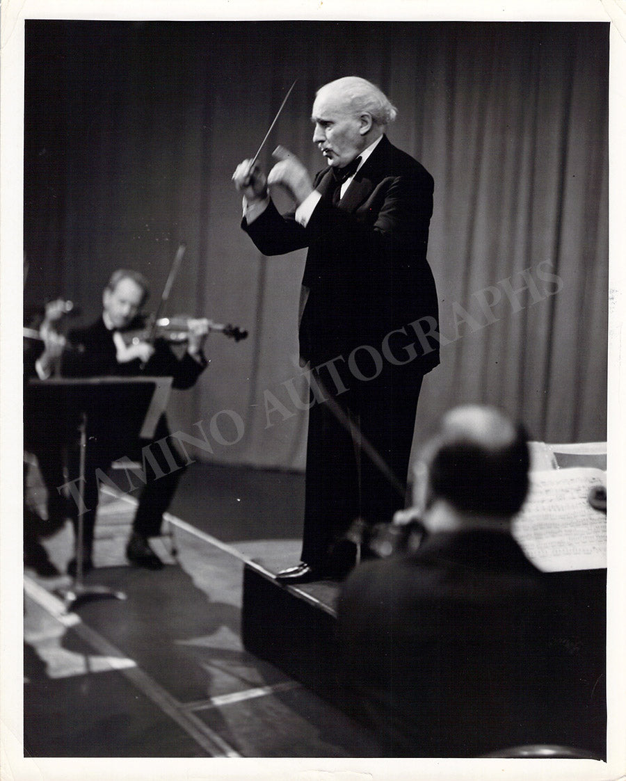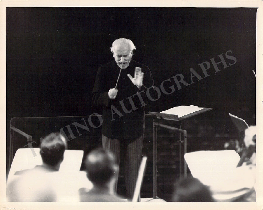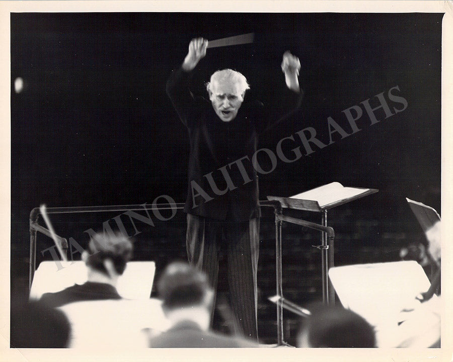 Photograph shown at the podium in a performance with the NBC Orchestra; ink-stamped four times on verso by the photographer, in excellent condition.