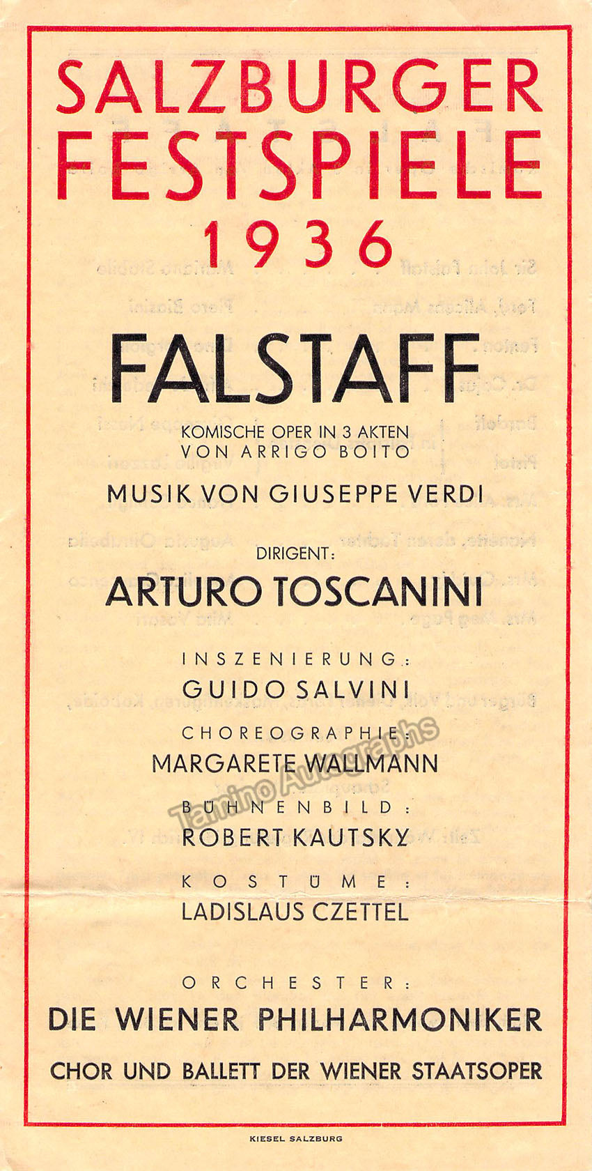 Toscanini, Arturo - Concert Program Salzburg Festival Falstaff 1936 Toscanini, Arturo - Concert Program Salzburg Festival Falstaff 1936