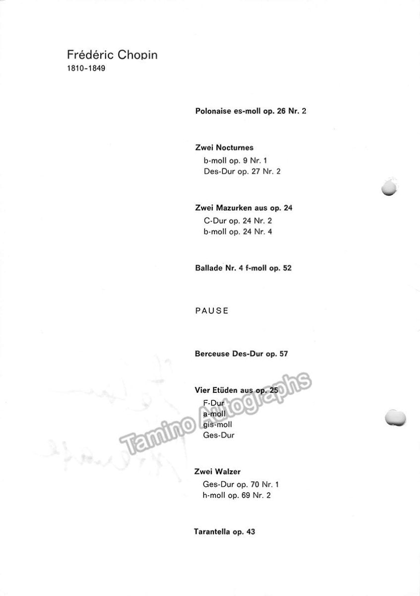 Signed photo on a program for a performance in Kassel, Germany on April 1st, 1976. Size is 13 x 6.5 cm, in excellent condition. Storage holes not affecting signature nor the picture.