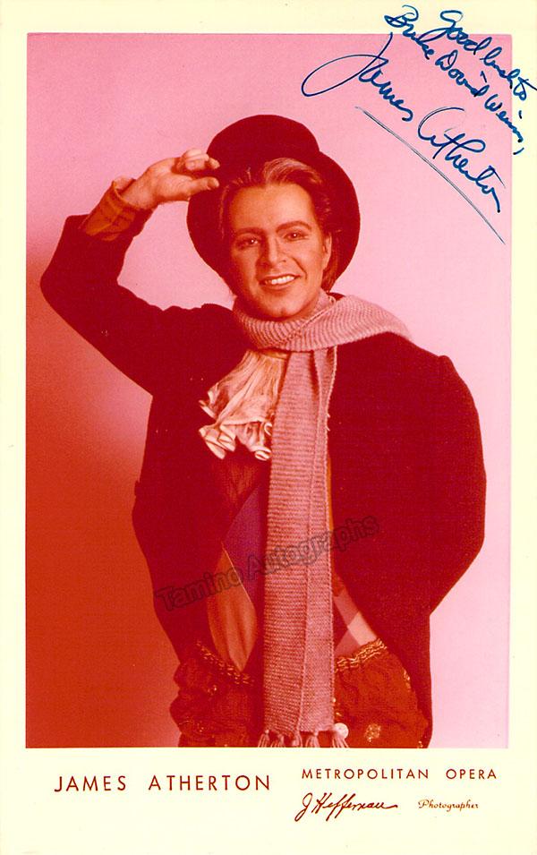 American tenor (1943-1987), signed photo, shown in role, inscribed. Blind stamped by photographer James Heffernan, Metropolitan Opera, New York. Size is 3.5 x 5.5 inches, in excellent condition.