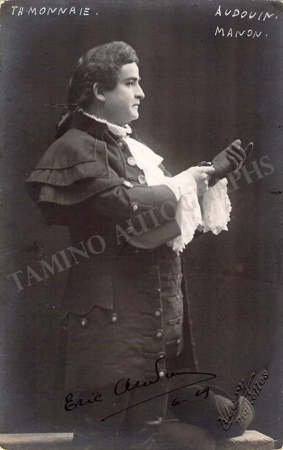Nice black-and-white photo postcard signed by him in 1919, shown as Des Grieux in Massenet's opera Manon. Size is 3.3 x 5.3 inches, some silvering, in very good condition.