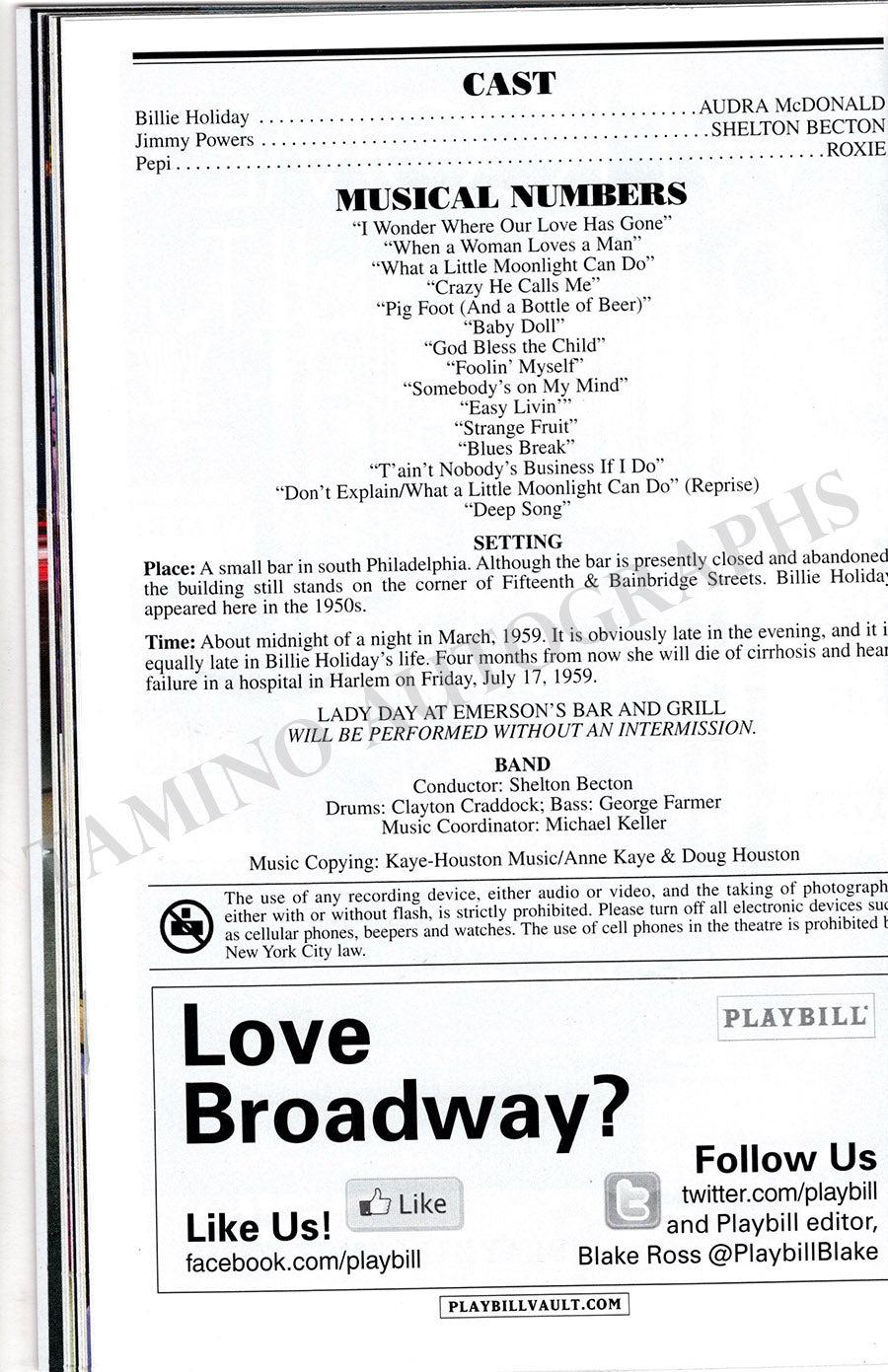 Audra McDonald Autograph Signed Playbill Lady Day at Emerson's