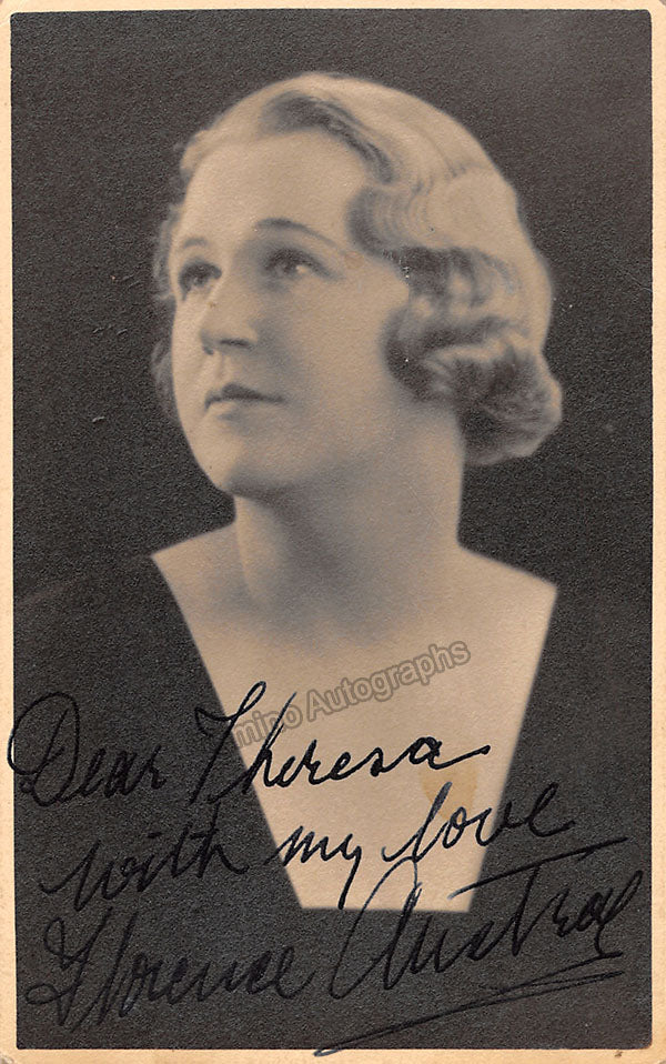 Australian soprano (1892-1968), born Florence Wilson, famous for her interpretations of Wagnerian roles. Signed photograph, shown as herself, inscribed.  Size is 3.25 x 5.25 inches, in very good condition.