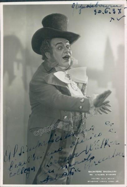 Italian bass (1900-1969), signed photo showing him in L´Elisir d´Amore at La Scala, inscribed, dated in 1937 in Glynndebourne. Size is 4 x 6 inches.