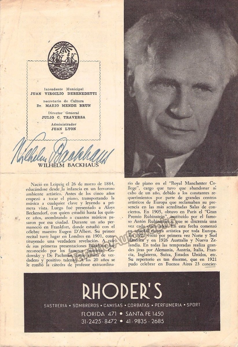 Backhaus, Wilhelm - Signed Program Teatro Colon, Buenos Aires 1951