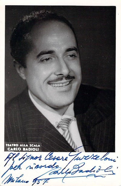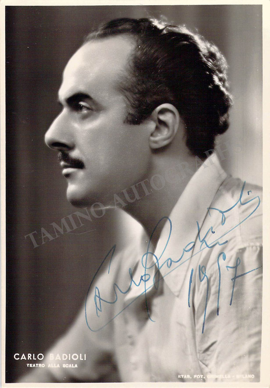 Signed publicity photograph, shown as himself, dated in 1957. Photo by M. Camuzzi, La Scala, Milan. Size is 4 x 5.75 inches, in excellent condition.