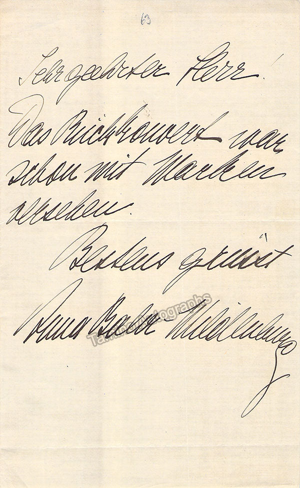 Autograph note signed, written in German, sold untranslated. Size is 4.25 x 7 inches, in excellent condition.