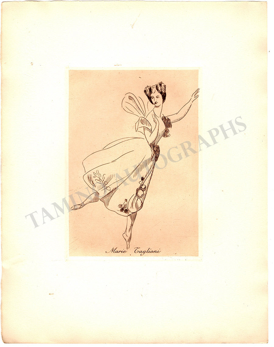 A beautiful collection of 8 engravings of famous XIX-century ballerinas inspired on drawings by artist A.E. Chalon. Ballerinas include Marie Taglioni (more than one), Carlotta Grisi, Fanny Cerrito,  and Fanny Elssler.