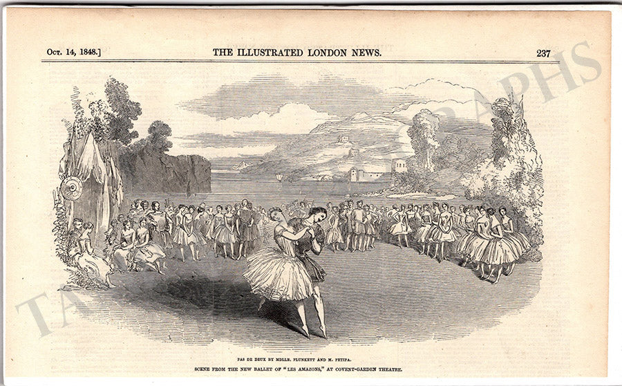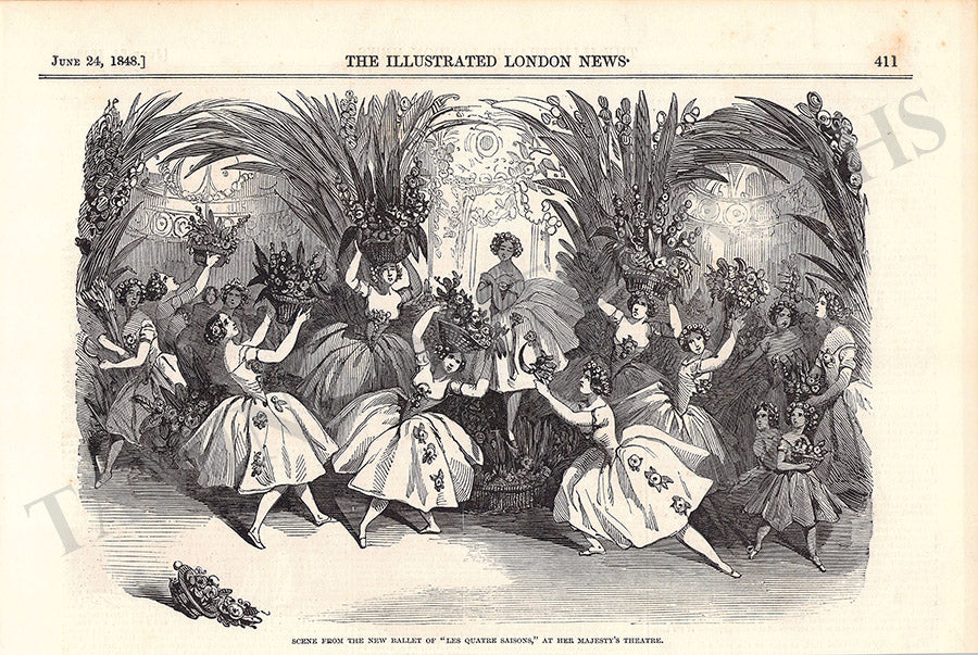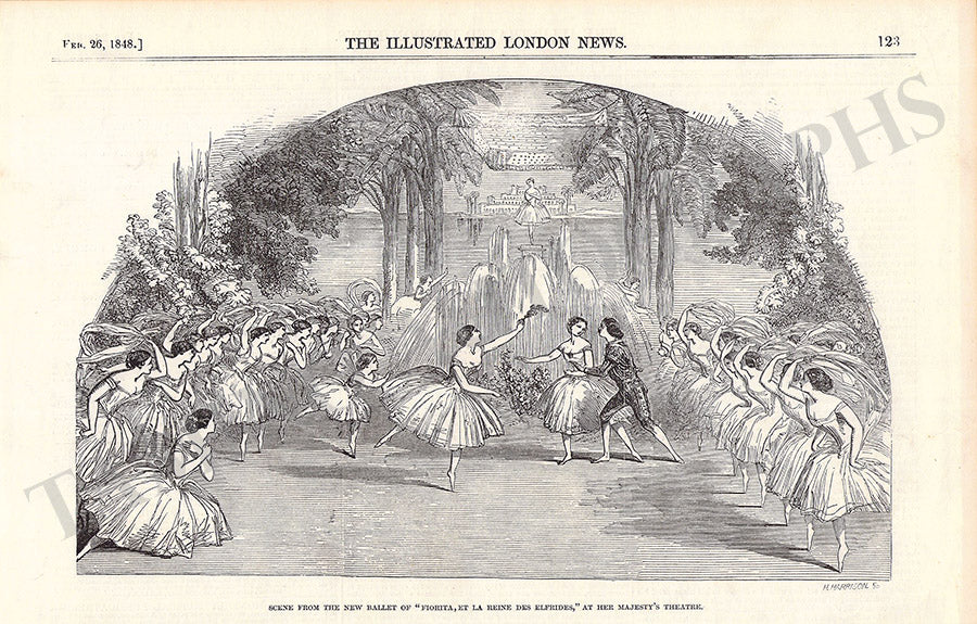 Set of 3 beautiful ballet scenes (clips from pages) published by the magazine Illustrated London News (1848). Size is 10.6 x 7 inches each approx., in very good condition.