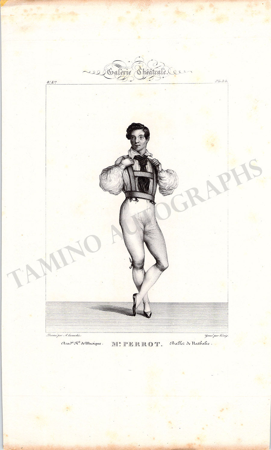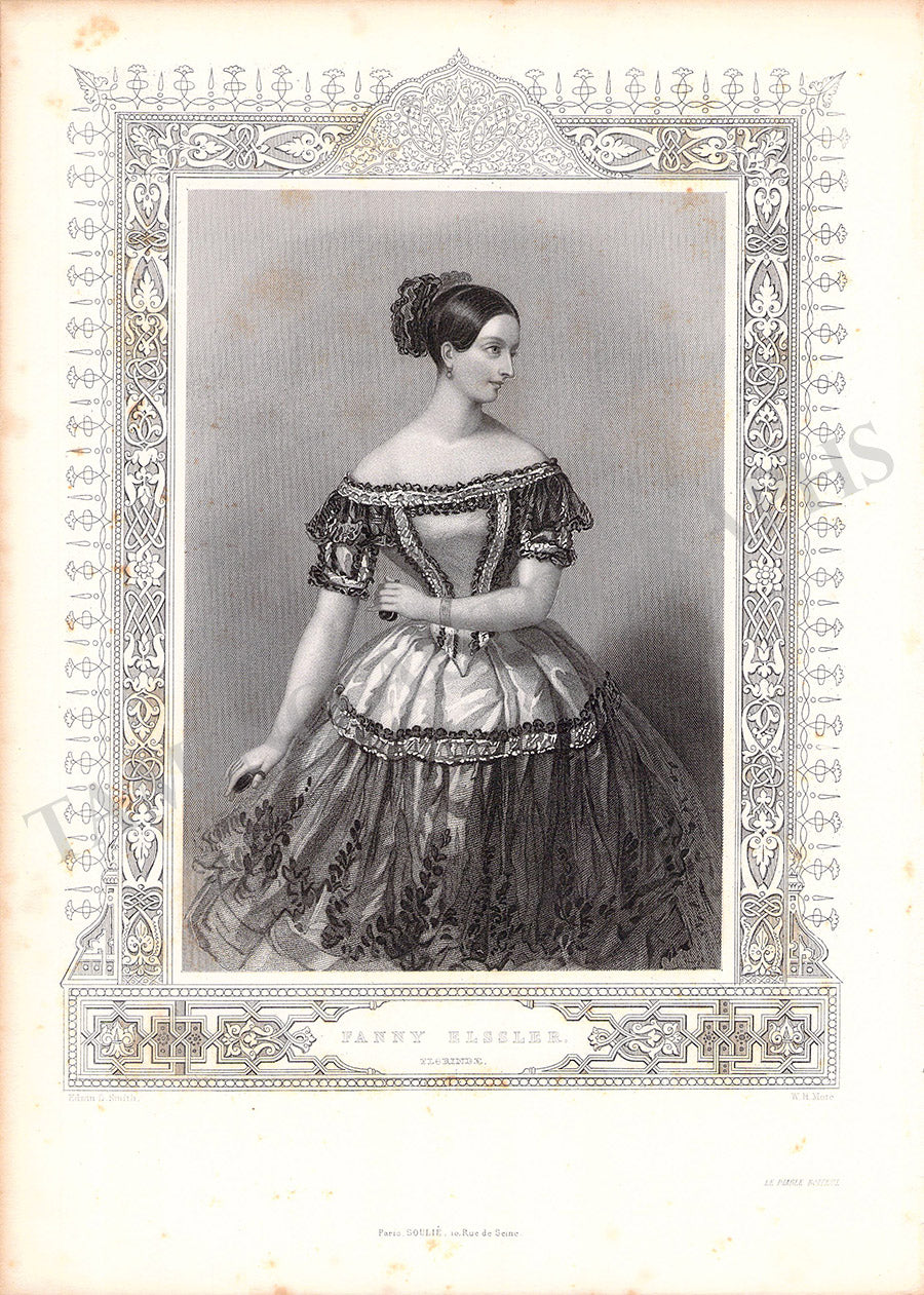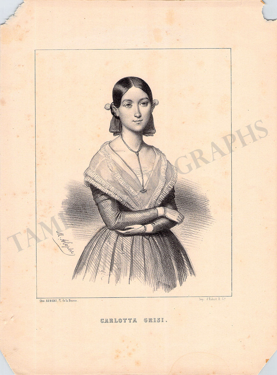 Beautiful print depicting a very young Grisi, published by Albert (Paris). Size is 7.8 x 10.6, trimmed corners, spotted rust stains, in good condition.