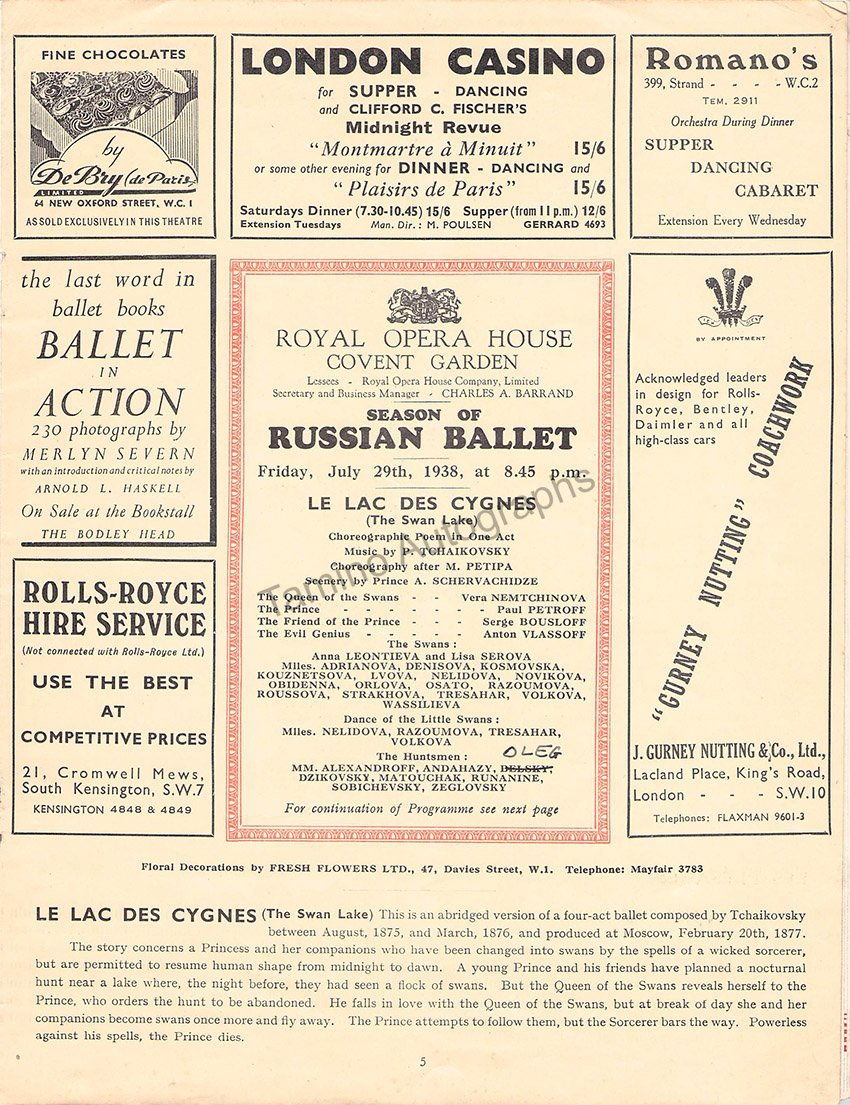 Ballet Russe - Royal Opera House Program Signed 1938