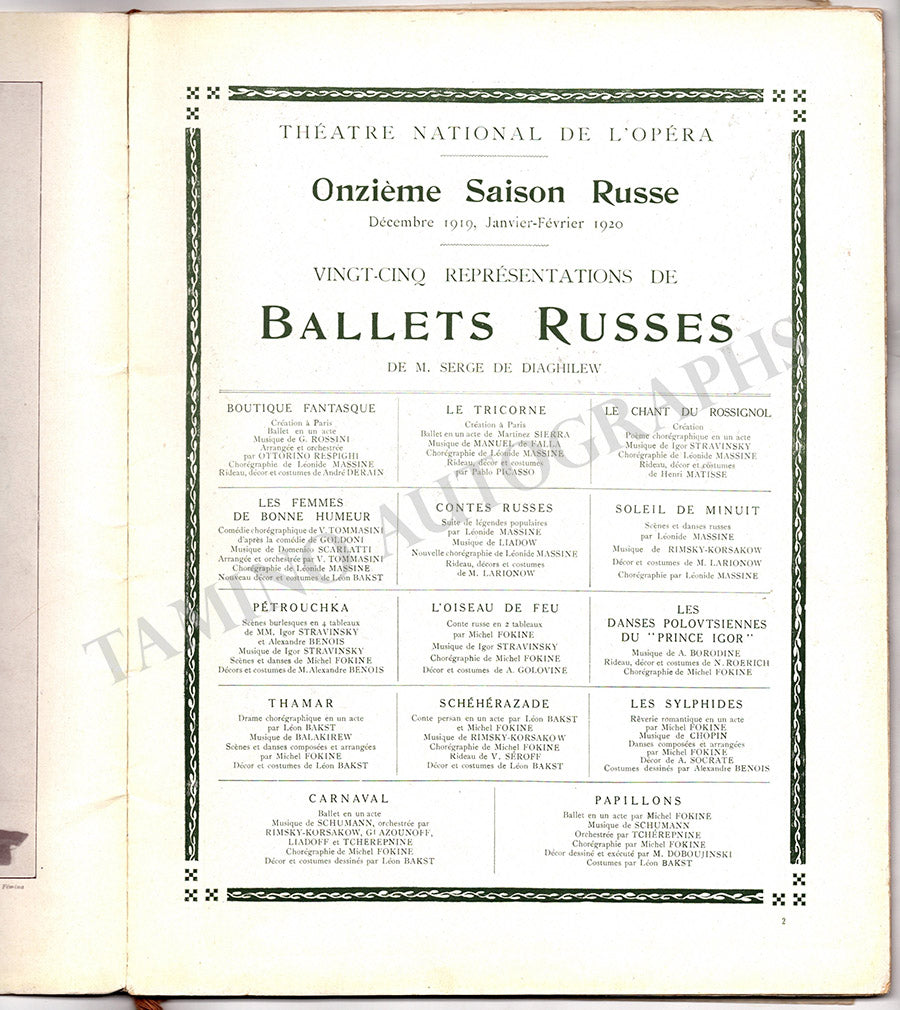Ballet Russes Diaghilev - Program Paris 1919-1920