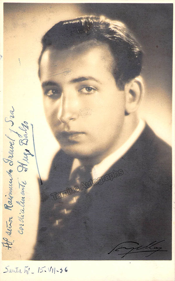 Fine photograph signed and inscribed by him, shown young, dated in Buenos Aires, 1936; also signed by the photographer (illegible) over the lower-right corner. Size is 4 x 6.3 inches, minor silvering, otherwise in very good condition.