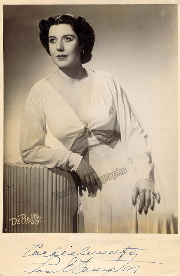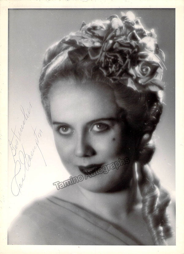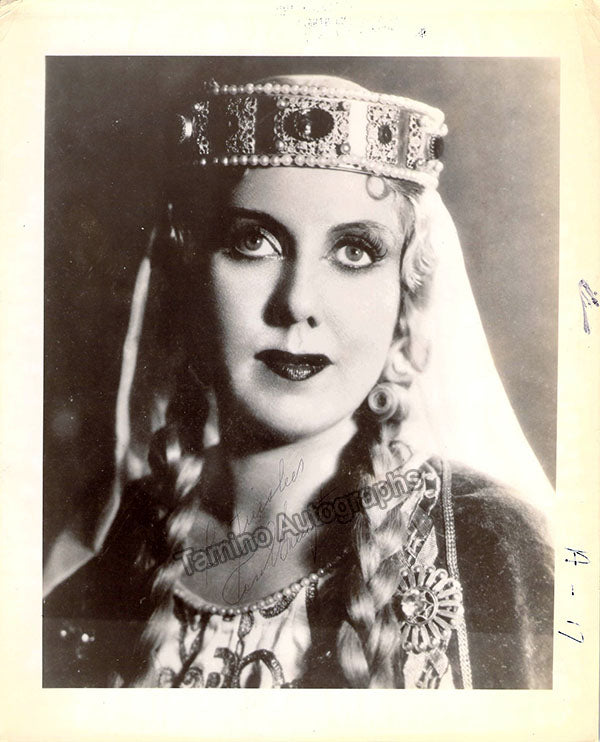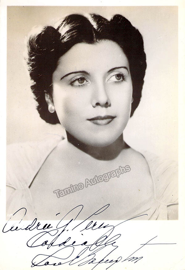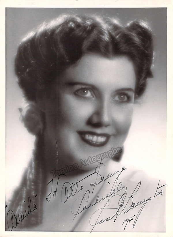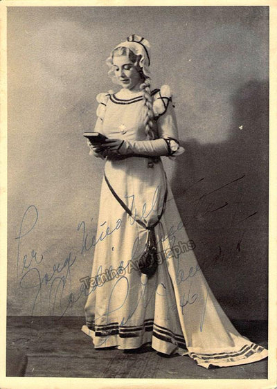 Signed photograph, shown as the Countess in Mozart's Nozze di Figaro. Stamped on verso by photographer Schonfeld, Buenos Aires. Size is 5.25 x 7.25 inches, in excellent condition.