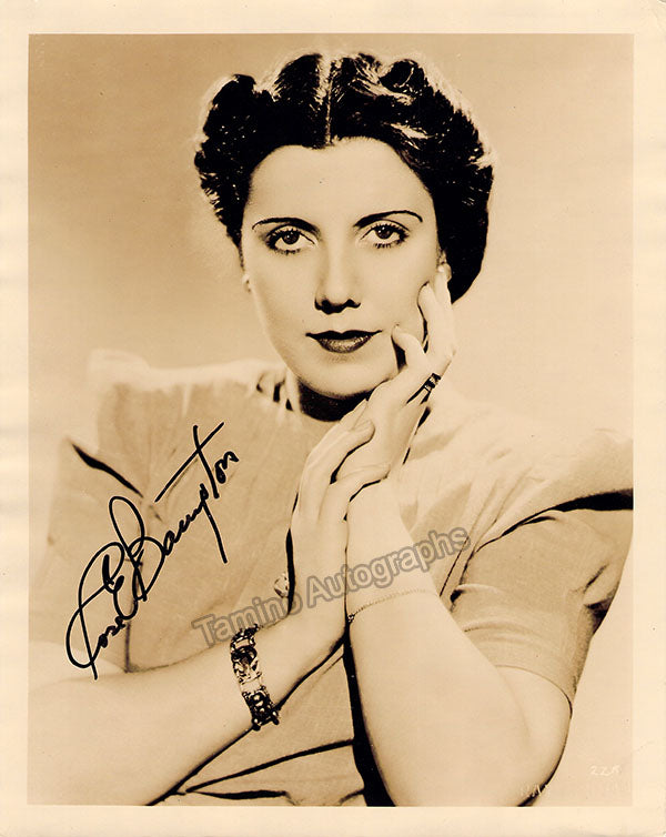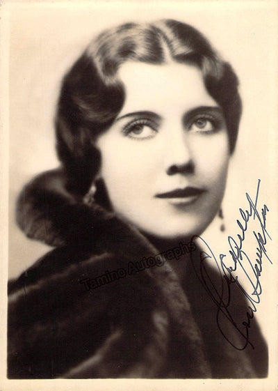 Signed photograph, shown as herself. Photo by DeBellis, New York (printed signature on front). Size is 4.5 x 7 inches, several creases on corners, otherwise in very good condition.