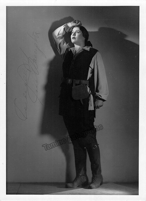 Signed photograph, shown in the title role of Beethoven's Fidelio. Stamped on verso by photographer Schonfeld, Buenos Aires. Size is 5.25 x 7 inches, in excellent condition.