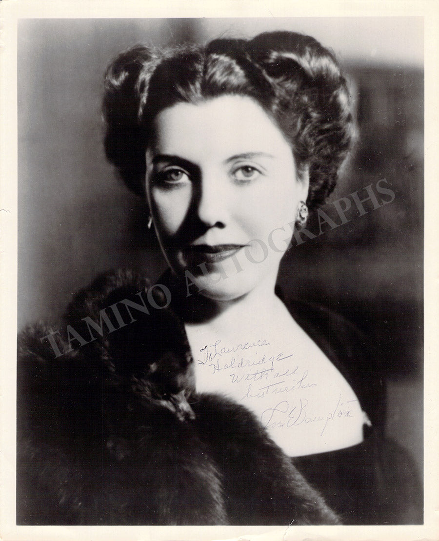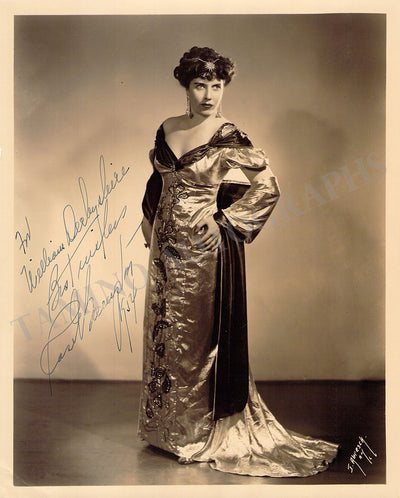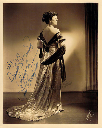 Signed photograph, shown as Amneris in Verdi's Aida, inscribed. Stamped on verso by World Wide Studio photographers, New York. Size is 8 x 10 inches, very small creases on several edges, otherwise in excellent condition.