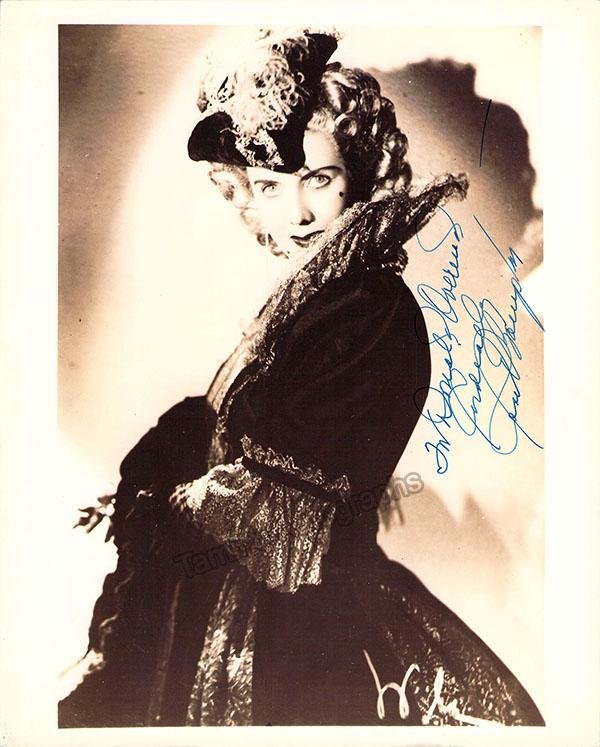 Signed photograph, shown in the title role of Puccini's Tosca, inscribed. Stamped on verso by photographer James Abresch, New York. Size is 8 x 10 inches, in excellent condition.
