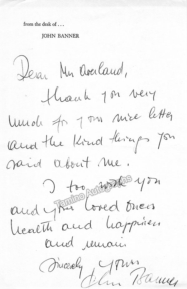 Austrian-born American film and television actor (1910-1973), best known for his role as Sergeant Schultz in the TV situation comedy Hogan's Heroes. Autograph note signed, 1 page in English. Size is 5.25 x 8.5 inches, 1 fold, in excellent condition.