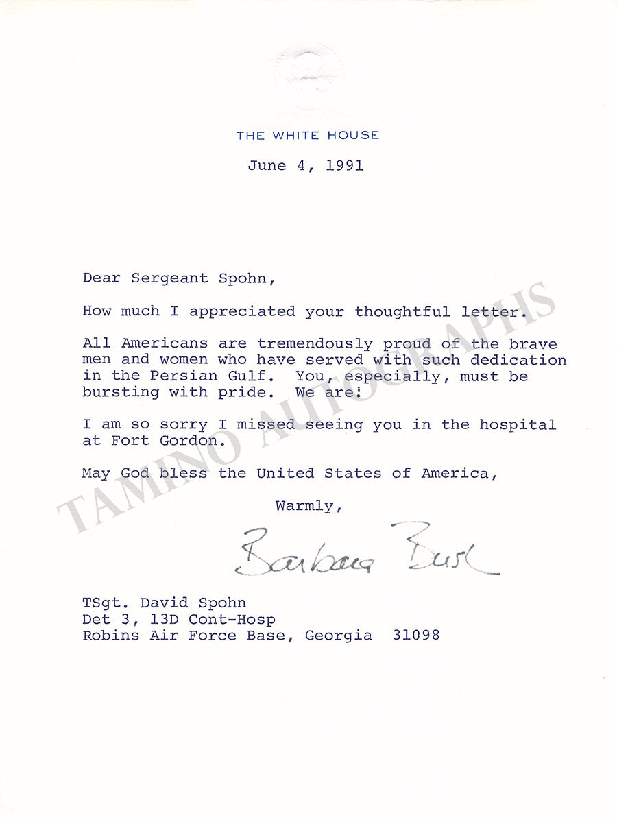ALSO INCLUDED is a typed letter signed by her with the letterhead of the The White House.