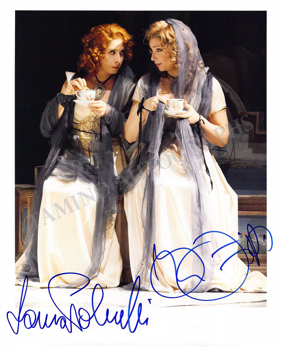 Beautiful color photograph signed by both artists, shown as Despina and Fiordiligi in Mozart's Così fan tutte. Size is 8 x 9.75 inches, in excellent condition.