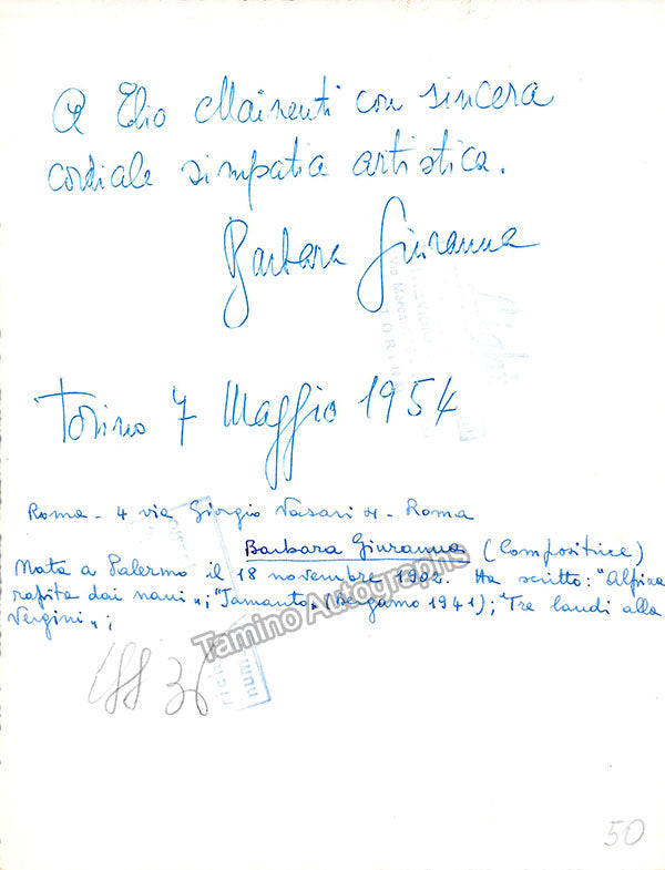 Giuranna, Barbara - Signed Photograph 1954 Giuranna, Barbara - Signed Photograph 1954