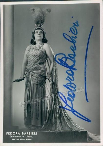 Italian mezzo-soprano (1920-2003). Although generally considered a formidable actress and singer in her own right, she is now mostly remembered for regularly partnering Maria Callas on as well as off stage during the 1950s. Signed photo, shown as Amneris in Aida, 4 x 5.75 inches, at teatro La Scala
