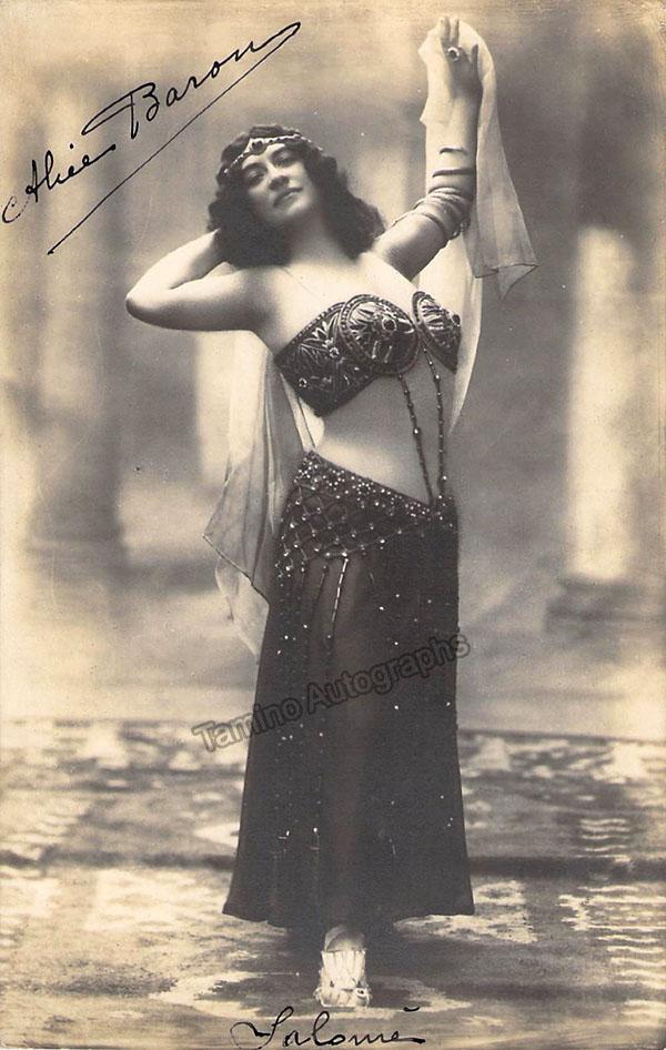 French soprano, active in the early twentieth century, signed postcard photograph, shown in title role of Richard Strauss's Salome. Photo by Varischi and Artico photographers, Milan. Size is 3.25 x 5.25 inches, in excellent condition.