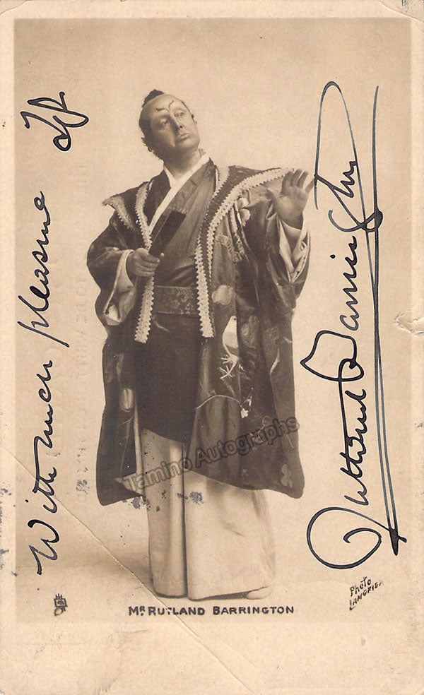 Signed photo postcard shown in role in Gilbert and Sullivan's Mikado.  Photo by Langfield. Size is 3.5 x 5.5 inches, there is a crease at the bottom left and wear on edges but otherwise in good condition.