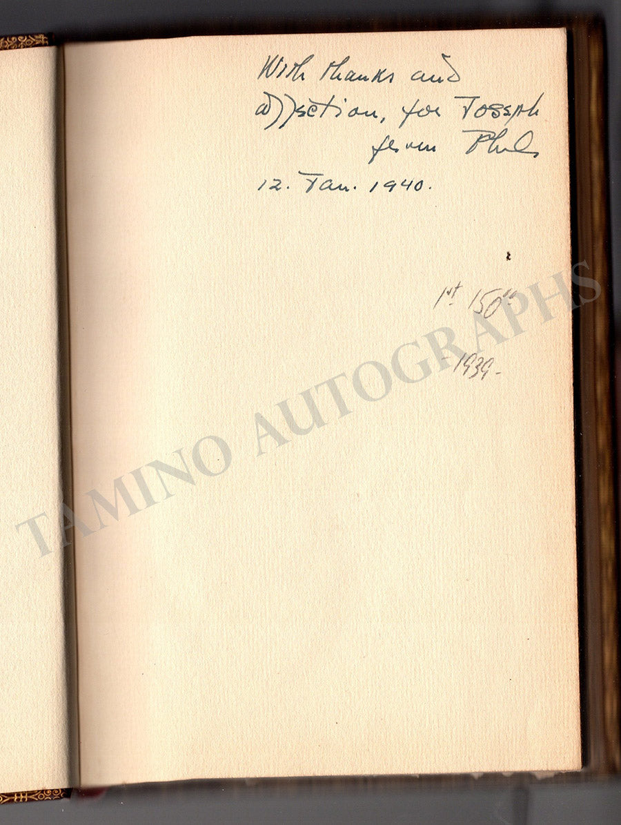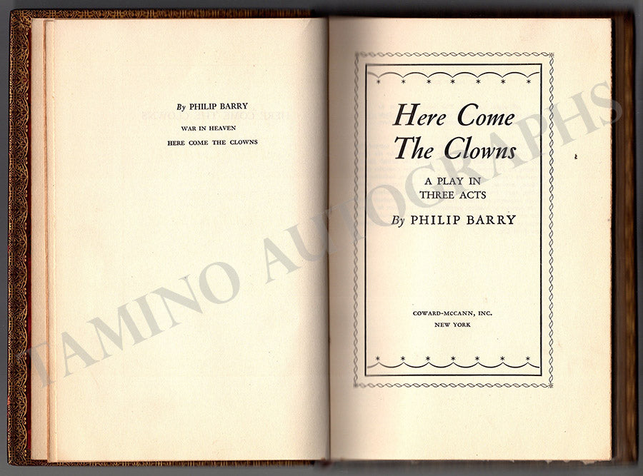 His book Here Come the Clowns signed and inscribed by him on the front end page in 1940. Size is 5.75 x 8.25 inches, 192 pages, third edition, in very good condition.