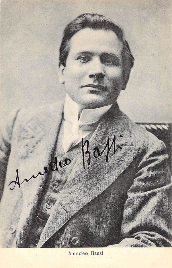 Italian tenor (1874-1949), signed photograph, shown as himself, bold handwriting and signature. Photo by V. Farneti, Rimini. Size is 3.5 x 5.5 inches, in excellent condition.