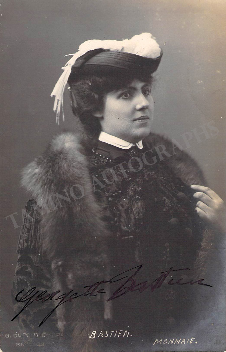 Belgian mezzo-soprano, signed postcard photograph, shown as herself. Size is 3.5 x 5.5 inches, slight paper loss on edges, otherwise in very good condition.