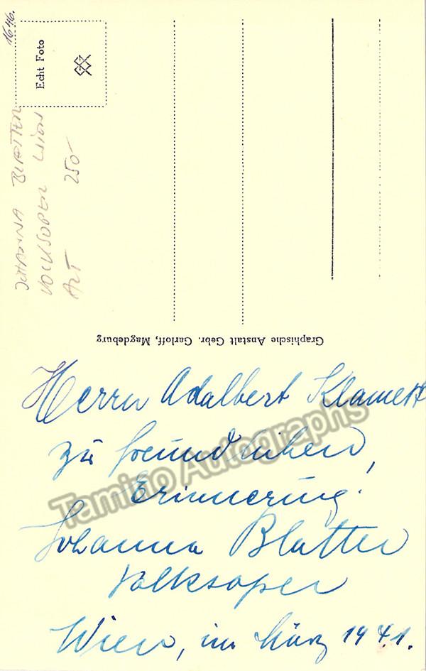 German contralto (1902-1965), signed photo postcard, shown as herself. Signature on verso, dated in 1941, Vienna. Size is 3.5 x 5,5 inches
