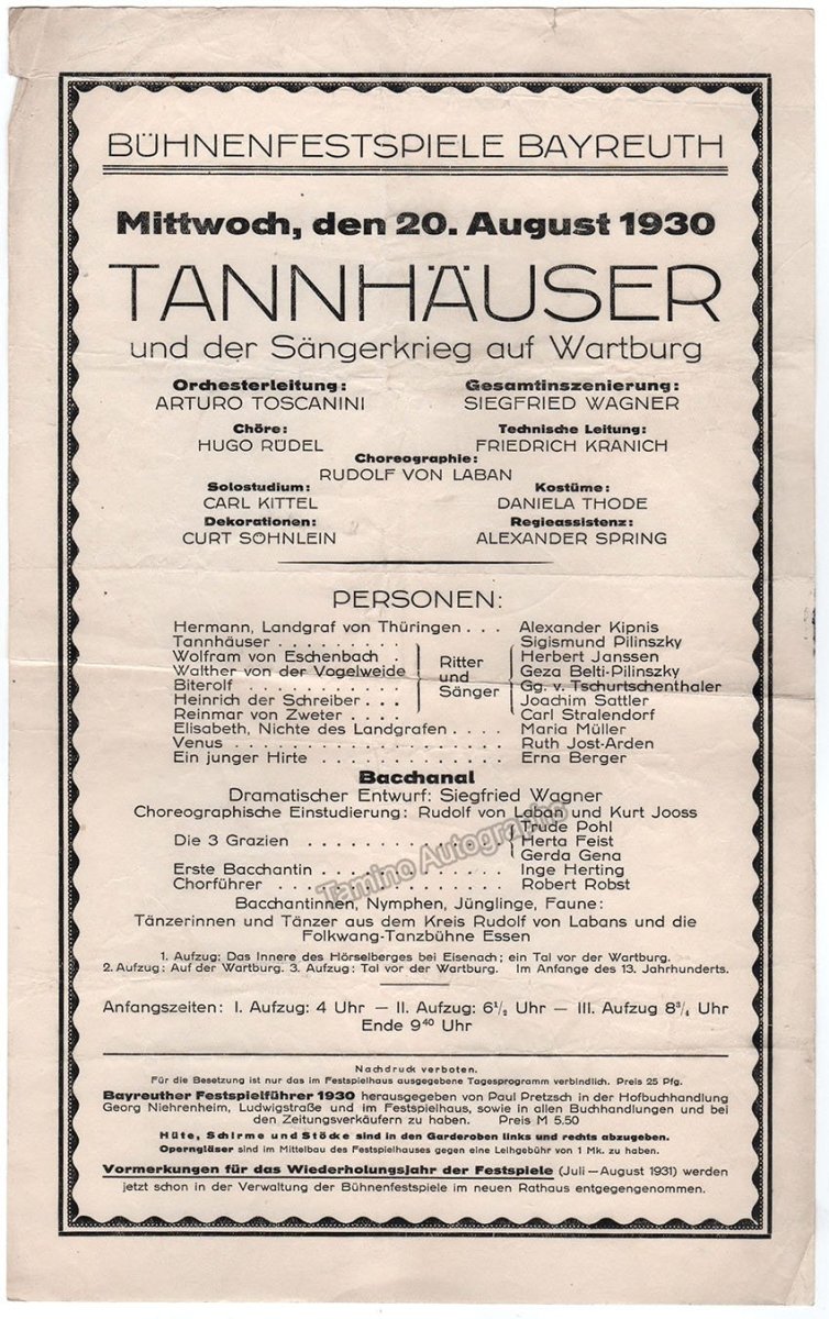 Bayreuth 1930 - Tannhauser Playbill - Arturo Toscanini