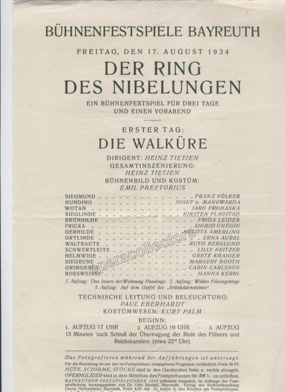 17. August 1934, Heinz Tietjen. With Franz Volker, Josef von Manowarda, Jaro Prohaska, Kirsten Flagstad, Frida Leider, Sigrid Onegin, 34 x 21 cm