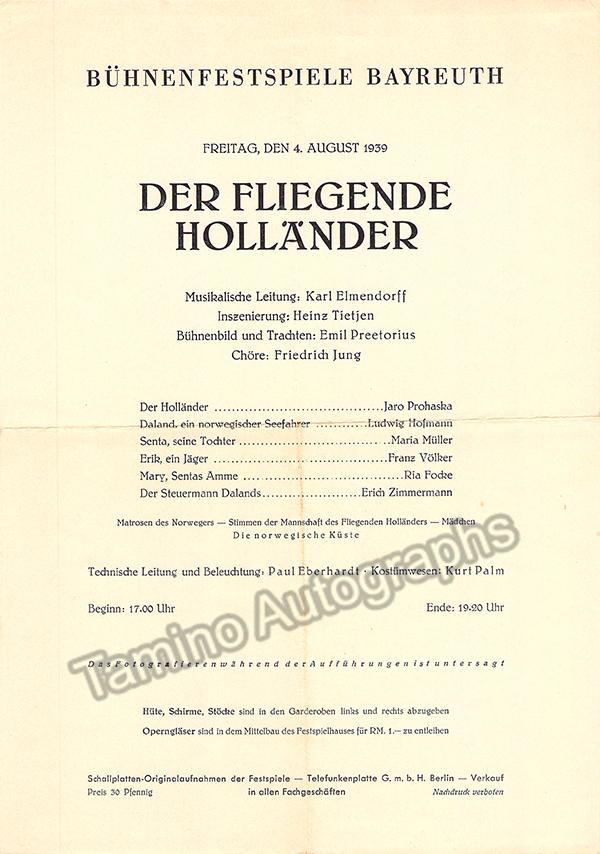 Bayreuth 1939 - Der Fliegende Hollander Program